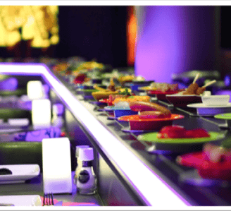 Our Sushi Conveyor System" prioritizes cost-effectiveness to maintain competitiveness in the market. We offer comprehensive services, including initial layout planning, design, installation, and after-sales support. The system features a stainless steel 304 body for rust prevention and hygiene maintenance, while the aluminum profile structure ensures flexibility, rigidity, and lightweight design. Specially designed composite plastic chains minimize noise and electrical consumption, utilizing only CE or UL approved motor and electrical components. All parts undergo systematic inspection before assembly, followed by a full system test and aging process in our factory prior to shipment, ensuring quality and reliability.